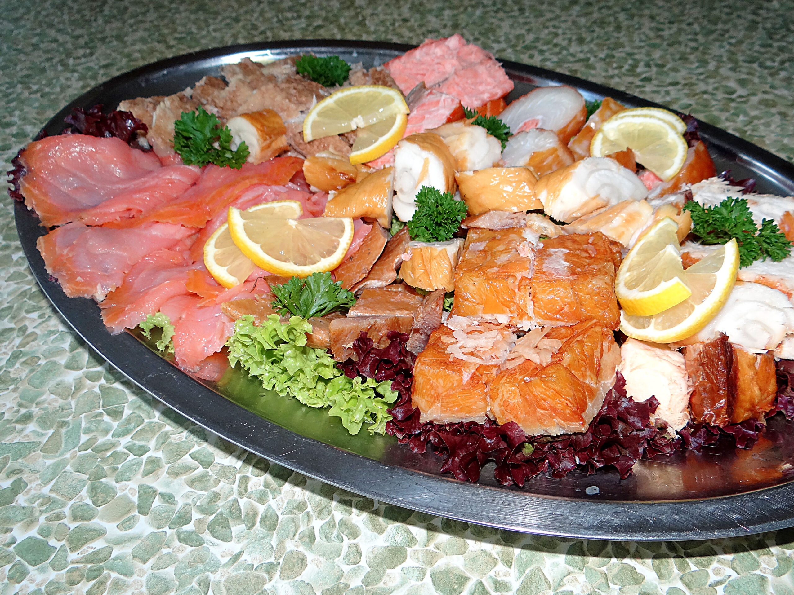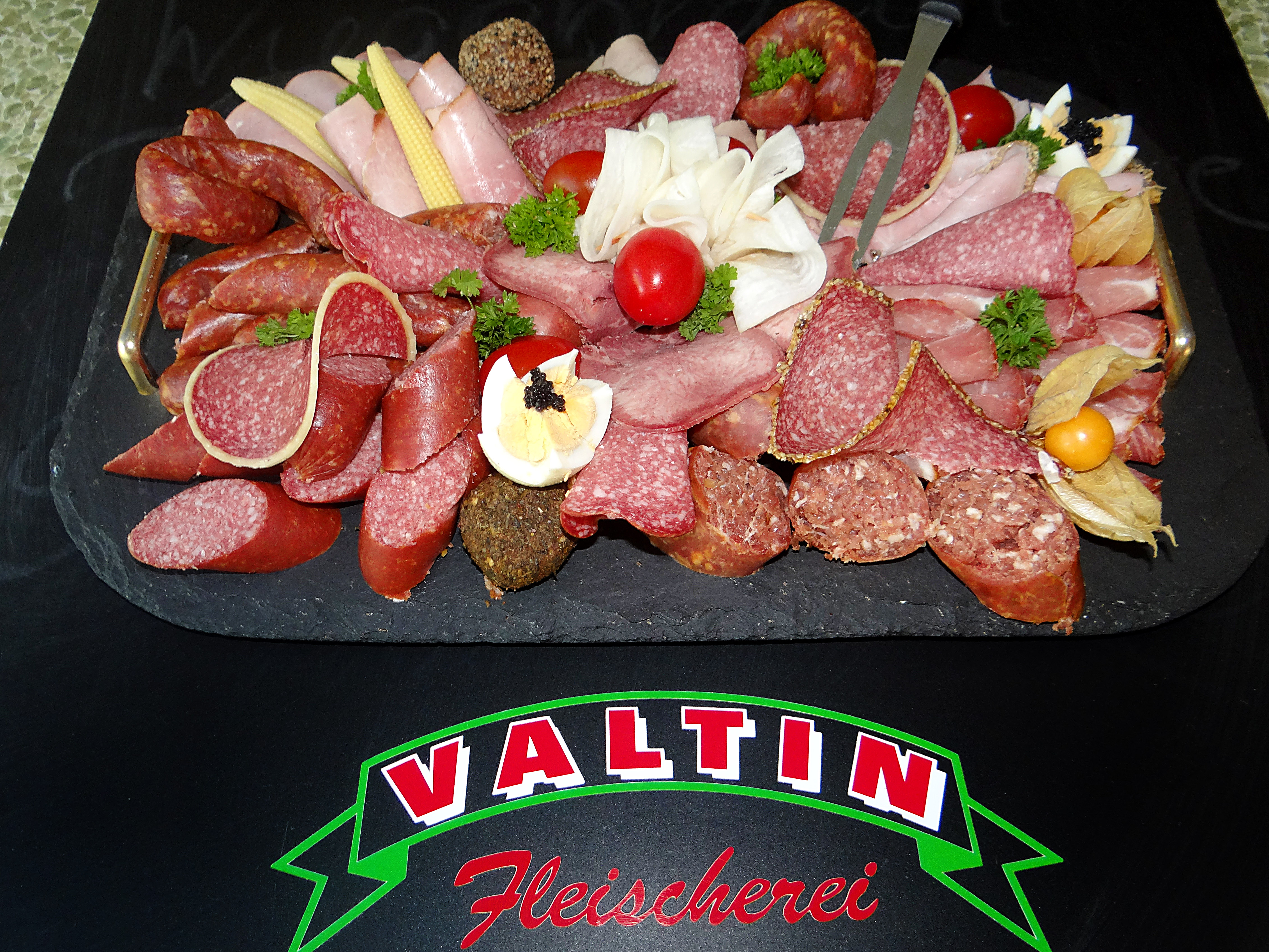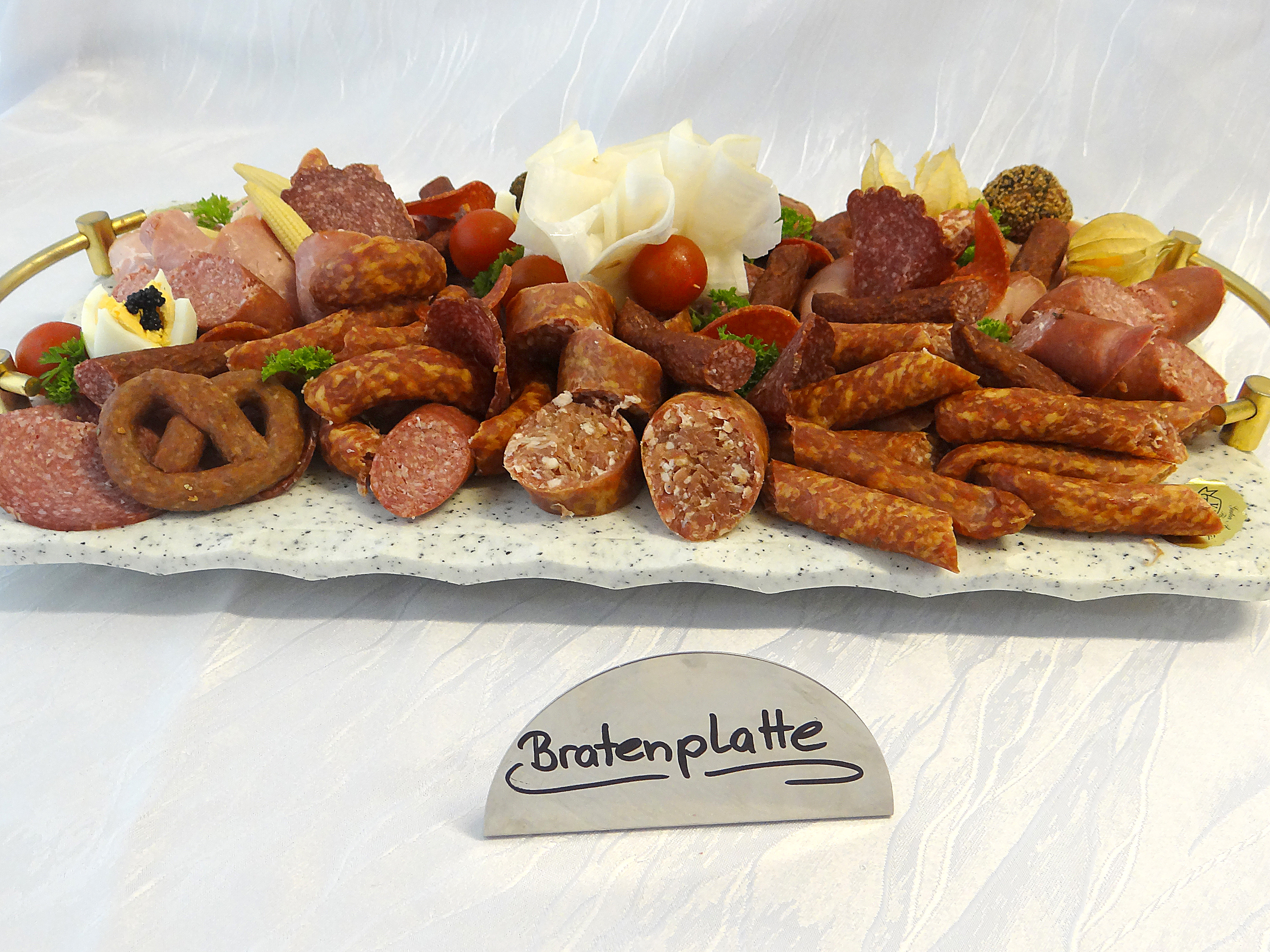 Aus unserem vielfältigen Sortiment stellen wir Ihnen individuelle Platten zusammen, vermieten Geschirr und Besteck und liefern auf Bedarf.